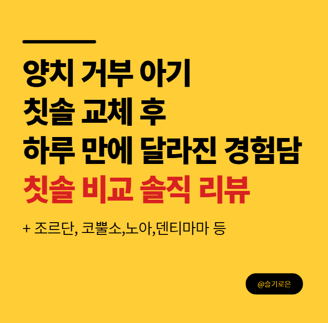 돌 전후 아기 양치시키는 게 이렇게 힘든 일일 줄 몰랐어요 😅행복이는 칫솔만 보여도 입을 꾹 닫고 고개를 돌려버리곤 했거든요.치카치카 노래도 틀어보고, 엄마가 먼저 닦는 척도 해봤지만 전혀 통하지 않았어요.“이 시기엔 다 그렇다”는 말로 위로받으면서도, 입속이 찝찝할까봐 매일 고민했죠. 그러다 우연히 칫솔을 바꿔본 게 신의 한 수였어요. 기존에 쓰던 건 모가 좀 두껍고 손잡이가 미끄러워서 그런지,행복이가 입에 넣는 걸 불편해하더라고요. 오늘은 행복이가 사용해봤던 칫솔들과이번에 바꾸게 된 칫솔에 대한 솔직리뷰를 공유하려고 합니다. 아기 양치로 고민하고 있으신 분들에게 도움이 되시길 바라요! 💧 아이 칫솔, 왜 선택이 중요할까? 아기와 어린이의 입 구조는 성인보다 훨씬 작고 예민해요.특히 돌 전후 ..